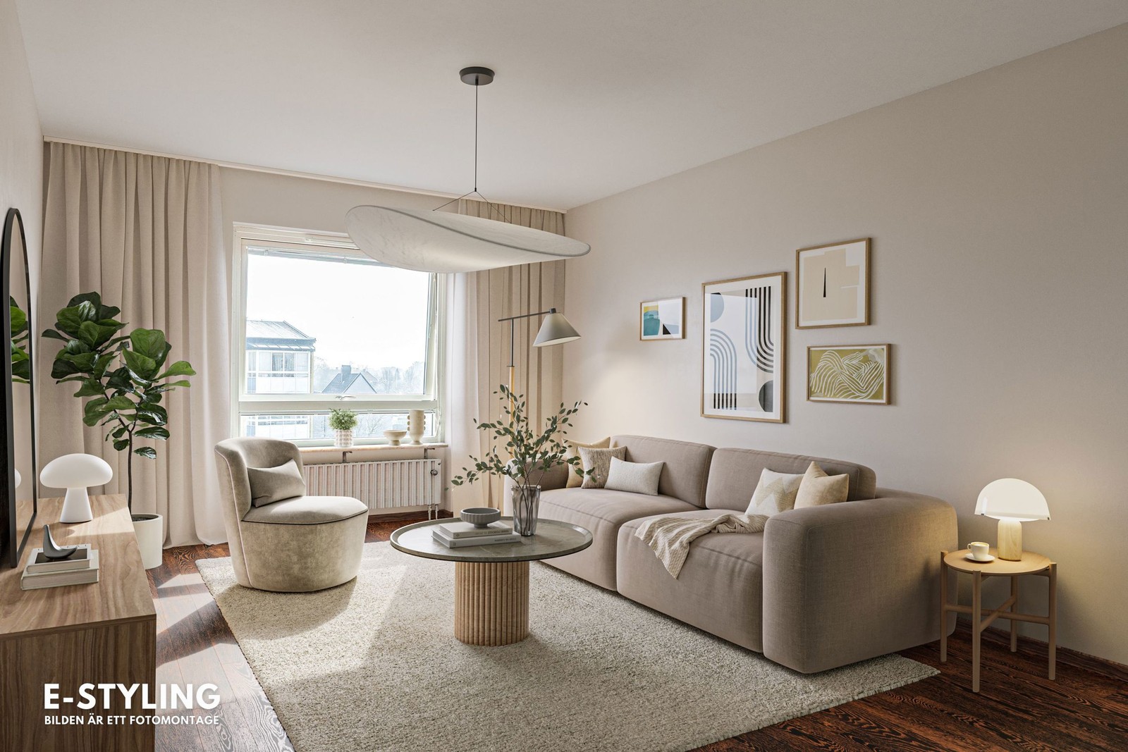 Ljus och välplanerad trea högst upp – med inglasad balkong!