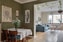 Halva/Vardagsrum - Vidare in finns den rymliga halvan som idag fungerar som matsal och i vardagsrumsdelen finns gott om plats för både matsalsbord, soffgrupp och arbetshörna. Fiskbensparkett på golvet. Väggarna i vardagsrummet har gul tapet och halvan avgränsas med en tapet i grön nyans.