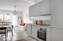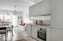 Efter hallen breder de generösa sällskapsytorna ut sig i en öppen planlösning mellan kök och vardagsrum. Köket är inrett med gråa, handtagslösa luckor som kombineras mot bänkskiva och stänkskydd i Carraramarmor. Köksutrustning består av varmluftsugn, spishäll, fläkt, kyl/frys samt diskmaskin.