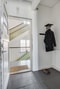 Hall -.I hallen möts vi av tåligt klinkergolv och vitmålade väggar. Plats för avhängning och förvaring i en klädkammare.