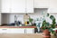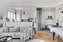 Kök - Stilrent renoverat kök med vita skåpsluckor, bänkskiva i ek och ljusgrått kakel som stänkskydd. Här finns spis, ugn, fläkt samt kyl/frys.