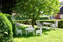 Charmigt byhus med fristående uterum, gäststuga, växthus och garage.