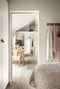 Genomgående vitvaxade trägolv och vitmålad slätspont på innerväggar och tak.