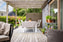 Trädäck runt hela huset, delvis skyddad av pergola samt litet friliggande trädäck.