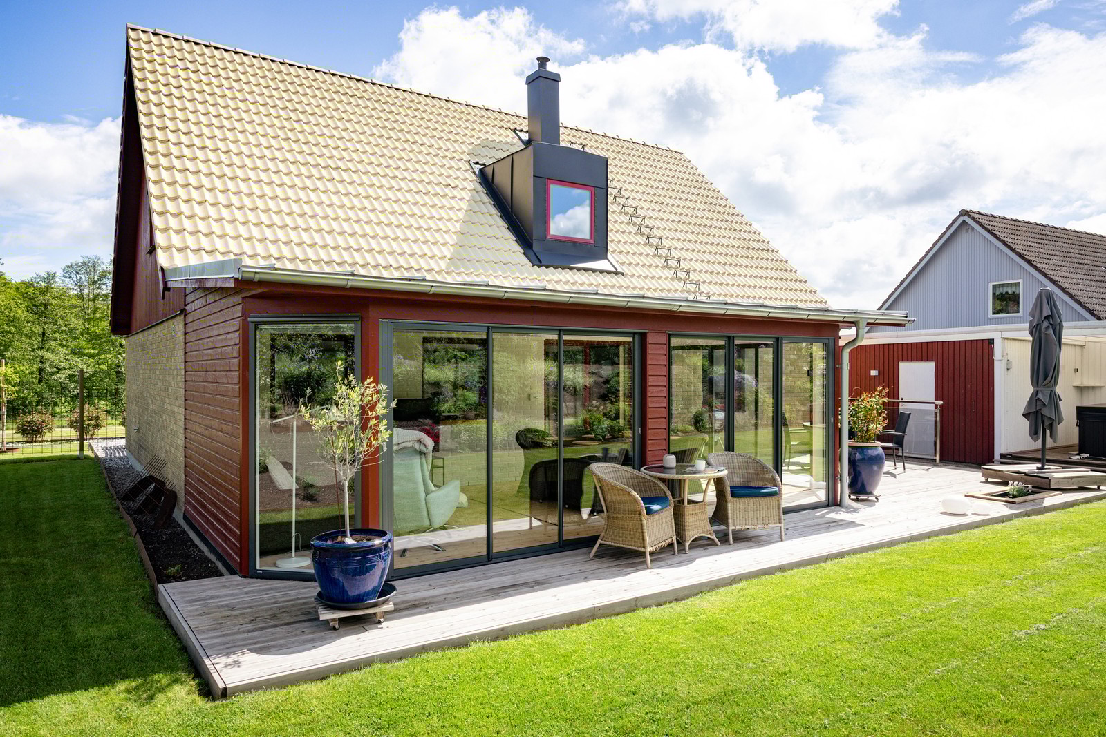 Välskött familjevilla med 6 rok, öppen planlösning, braskamin, inglasat uterum, spabad, garage mm