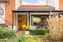 Entré från Mossgatan in till väderskyddad entré med vackert golv av Komstadsten (från Österlen) som leder in till central hall med plats för ytterkläder. Från hallen når man även trädgården med stenlagd uteplats under tak samt fristående garage.