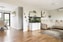 Arbetskök med inredning från Smedstorps kök, samtliga maskiner är sk Smart Home-vitvaror; spishäll med induktion, fläkt, diskmaskin, inbyggnadsugn med varmluft, kylskåp och frysskåp. Separat matplats med utgång till trädgård, i öppen planlösning ligger ett rymligt vardagsrum som har utgång till överbyggd terrass.