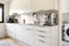 Grovkök/tvättstuga med två tvättmaskiner, torktumlare, tvättho, varmvattenberedare och bra med förvaringsutrymme och arbetsytor. Praktiskt med utgång till trädgård.