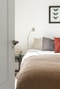 Stort sovrum på gaveln med garderobsförvaring.