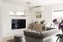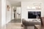 Ett ljust och rymligt vardagsrum i öppen planlösning mot kök och hall. Här finns generöst med plats för soffgrupp och tv-möbel. Stora fönsterpartier ger ett fantastiskt ljusflöde och från rummet når du bostadens ena uteplats. Ljust parkettgolv och vita väggar skapar en modern och enhetlig känsla.