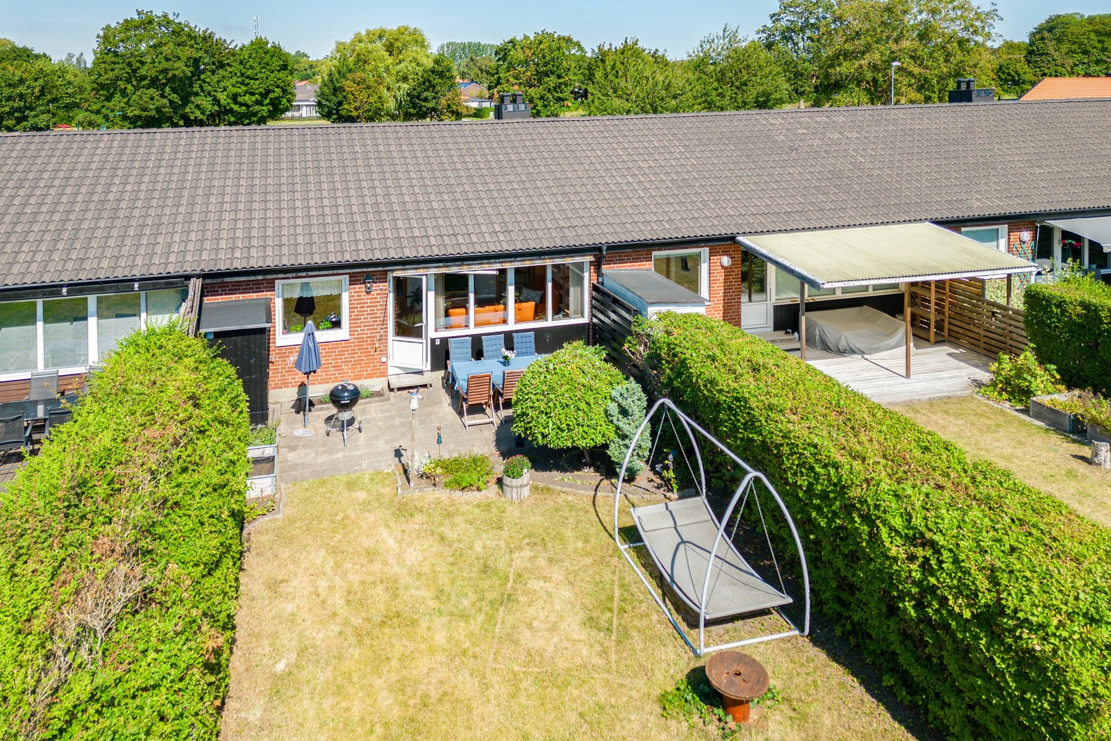 Trevligt radhus med rymlig källare och grönskande trädgård.