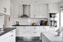 Det hemtrevliga köket har vita luckor och en stilren svart bänkskiva. Här erbjuds generösa arbetsytor för matlagning och bakning, gott om förvaring samt plats för matbord där hela familjen kan samlas. Lyxig golvvärme skapar extra trivsel i köket.