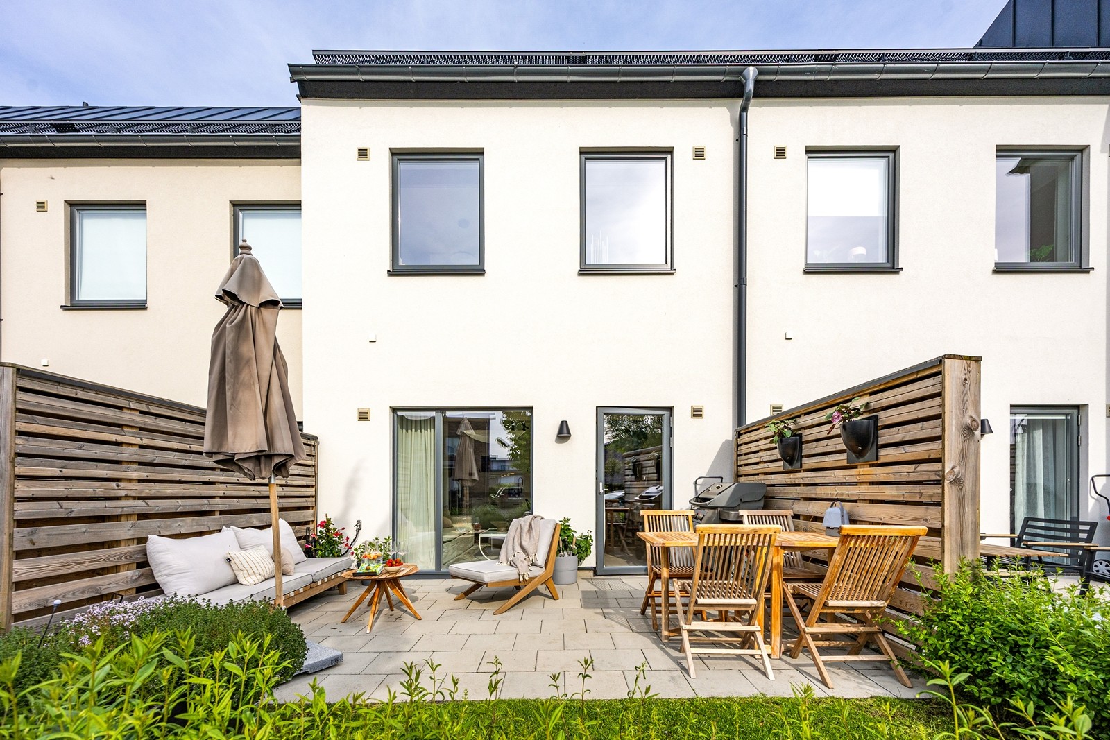 *I avgiften ingår bostadsrättstillägg. Obligatorisk tillägg för vatten och el. El och vatten enligt uppmätt förbrukning tillkommer utöver månadsavgift och fast avgift el/vatten. Fast elkostnad 785 kr. Fast vattenkostnad 110 kr. Parkering vid varje radhus ingår.