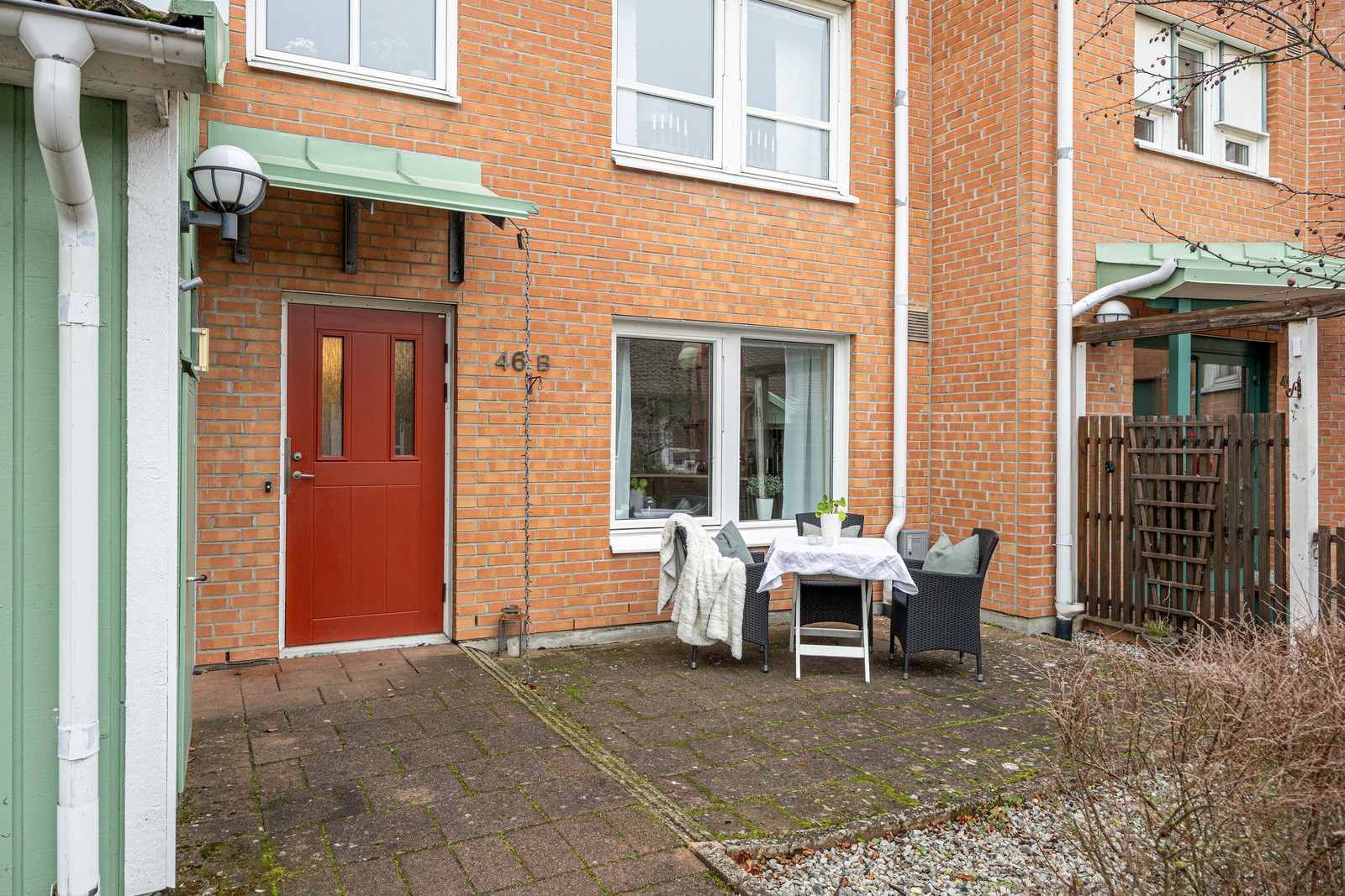 Här bor du på en stillsam och bilfri gata med lekplats och ett stort grönområde en kort promenad bort – en idealisk miljö för såväl vuxna som barn.