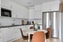 Vidare öppnar bostaden upp sig mot det smakfulla köket med generösa arbetsytor. Köksinredningen går i vitt och tidlösa toner med eleganta köksluckor som harmonierar fint med vitt kakel och en vacker bänkskiva. Köket är fullt utrustat med fläkt, kyl, frys, häll, ugn, mikrovågsugn samt integrerad diskmaskin. Här erbjuds gott om både arbetsyta och förvaring, liksom en trevlig matplats. Den öppna planlösningen mot vardagsrummet skapar en social och inbjudande miljö, perfekt för både vardag och umgänge. I direkt anslutning nås även bostadens balkong, som blir en naturlig förlängning av sällskapsytorna.