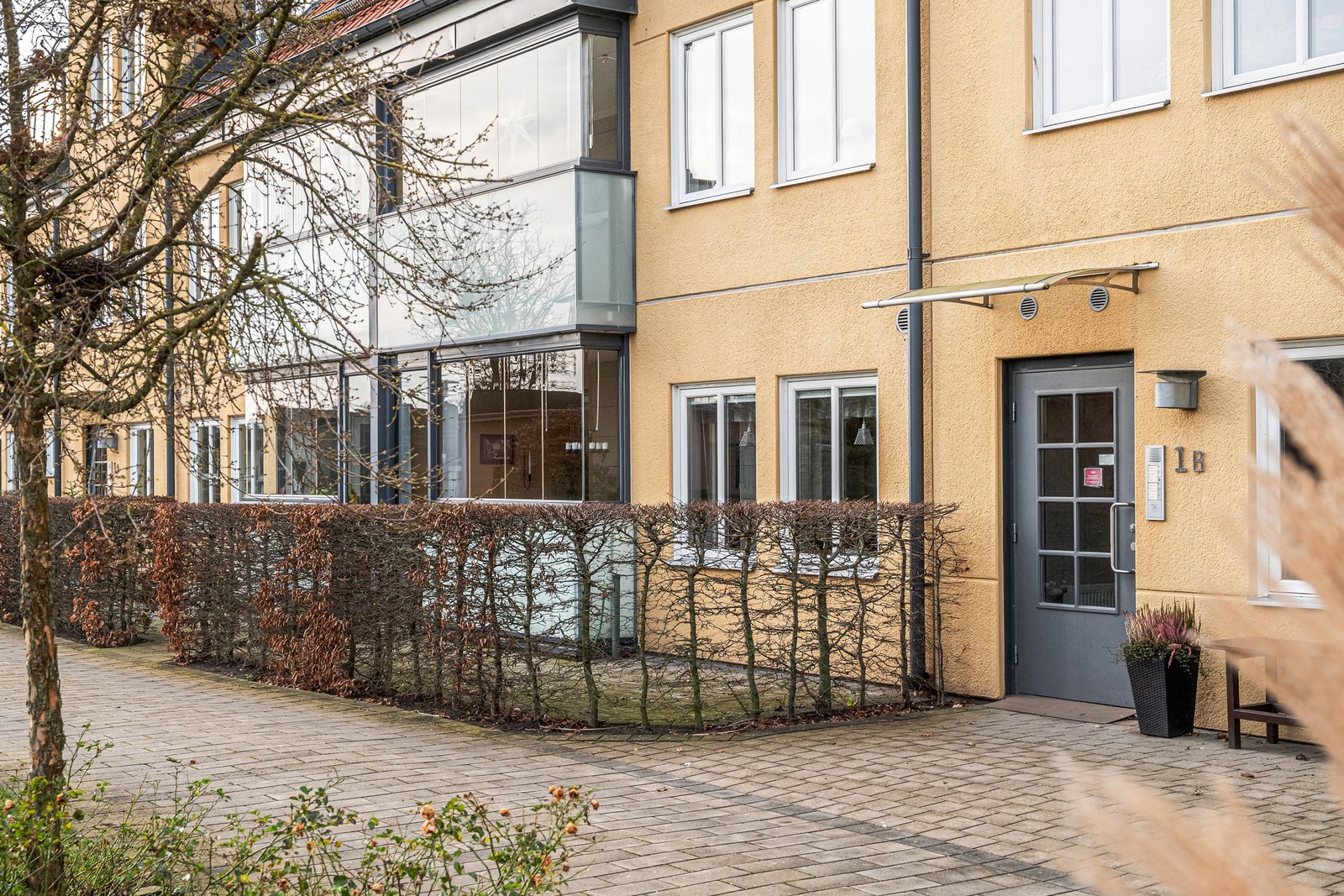De flesta lägenheterna har inglasad balkong och de 10 som ligger i bottenplan har egna uteplatser.