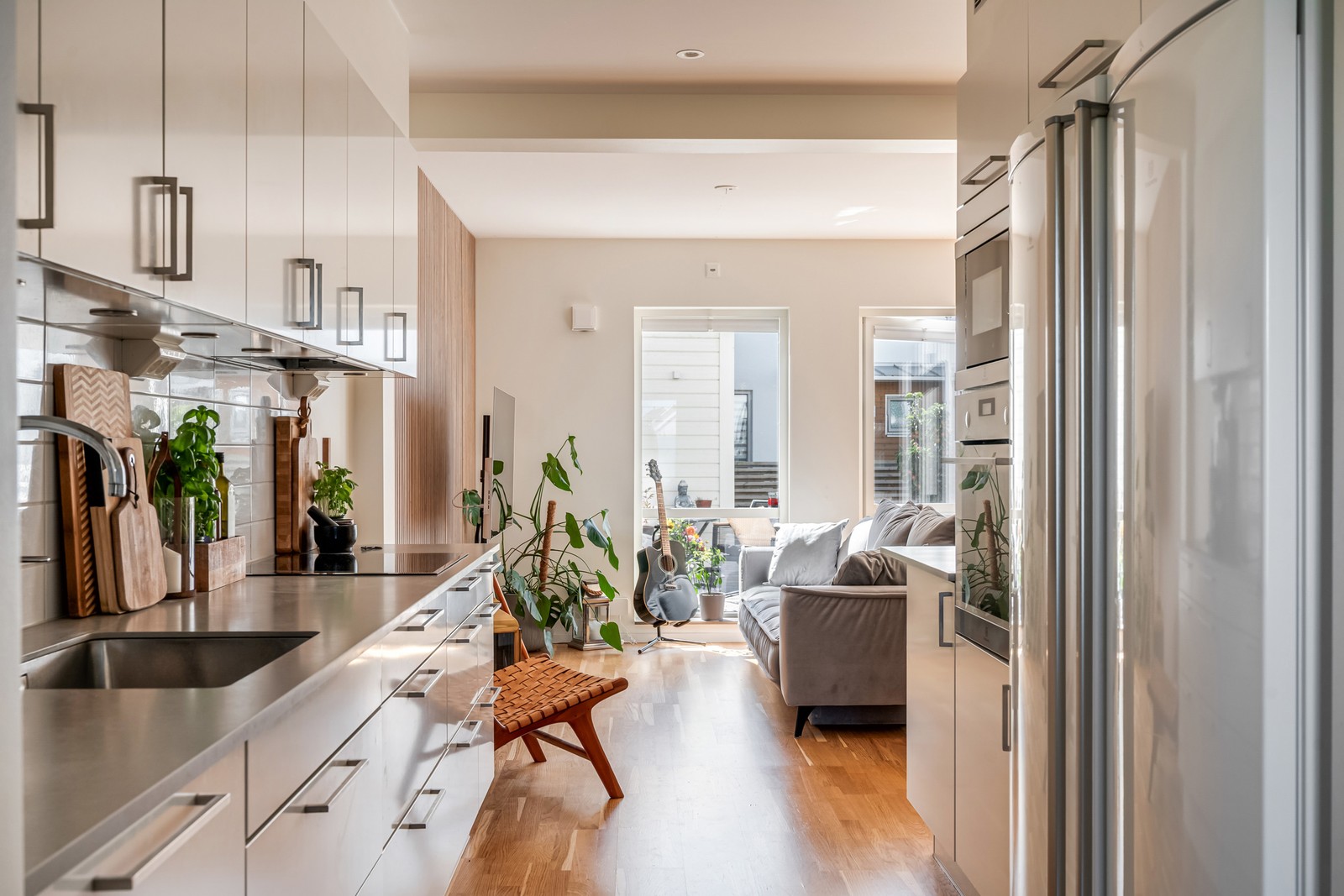 Bostaden är fördelad på två plan och erbjuder en funktionell planlösning som gör vardagen smidig. På markplan möts du av ett modernt kök med öppen kontakt mot vardagsrummet – en naturlig samlingspunkt för familj och vänner. Härifrån når du uteplatsen och den lättskötta trädgården, perfekt för både odling, lek och avkoppling. Entréplan rymmer även praktiska inslag såsom gott om förvaring, badrum, tvättstuga och en flexibel yta som passar utmärkt som hemmakontor. En trappa upp finns tre rymliga sovrum, ett allrum med plats för både mysiga filmkvällar samt ett helkaklat badrum med badkar. Genomgående ljusa ytskikt, smakfulla materialval och välplanerade lösningar gör att hemmet känns inbjudande. Till huset hör dessutom parkeringsmöjlighet och tillgång till laddplats via föreningen.
