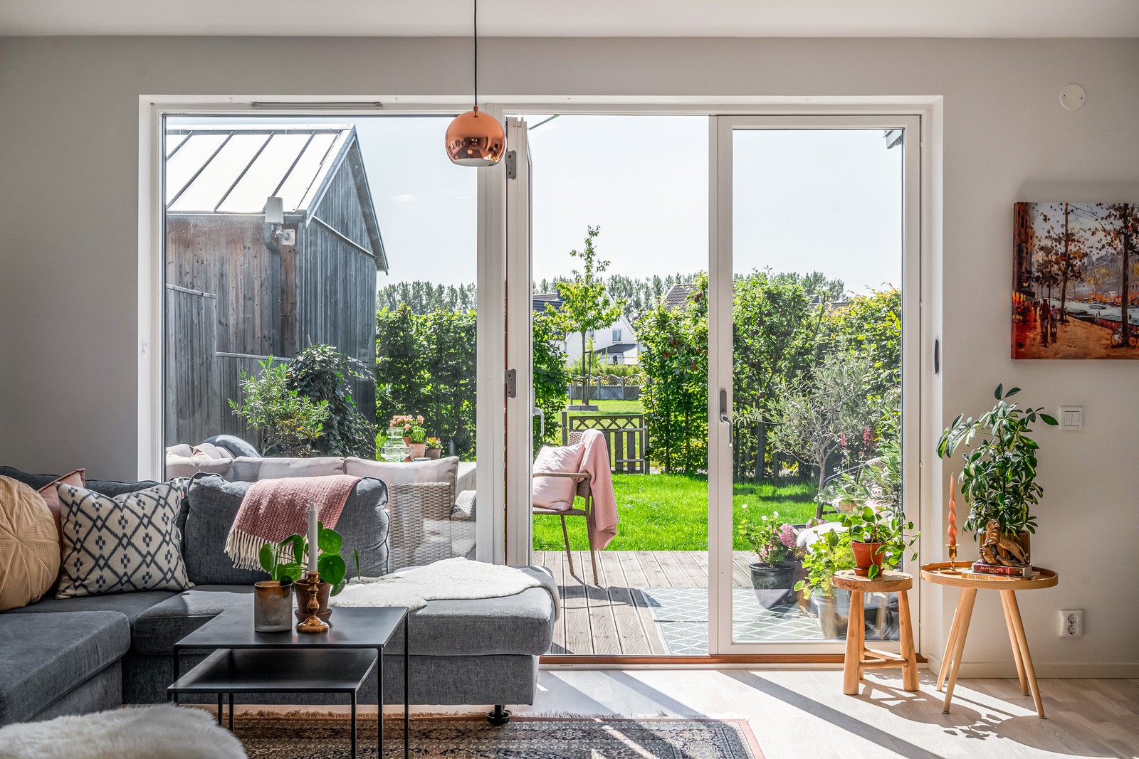 Välplanerat gavelradhus med trädgård i söderläge