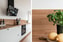 Kökinredning från Ikea. Vita luckor, bänkskiva i ekfärgad laminat som fortsätter upp som stänkskydd. Utrustat med häll, ugn, fläkt, diskmaskin, kombinerad kyl och frys. Köket samspelar i en öppen planlösning med matplatsavdelningen som blir ett luftigt rum och bjuder på stora fönsterpartier ut mot trädgården.