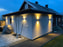 Nyanlagd uppfart med gång från parkeringen till huset med belysning i form av pollare och kantplåt längs gången.