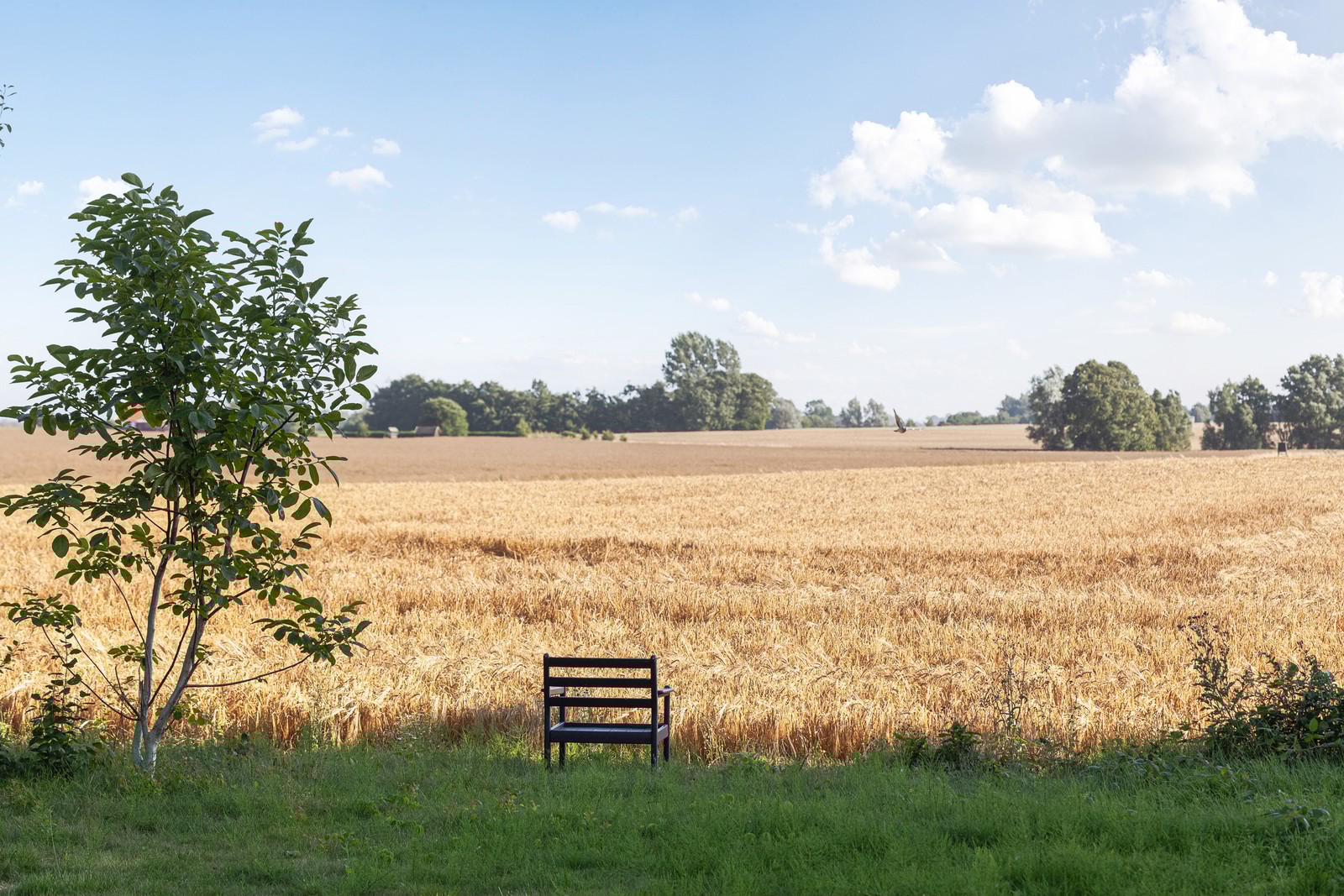 Väl tilltagen tomt och med en stor trädgård som gränsar mot öppna åkrar vilket ger en känsla av frihet och obegränsade vyer över det skånska landskapet.