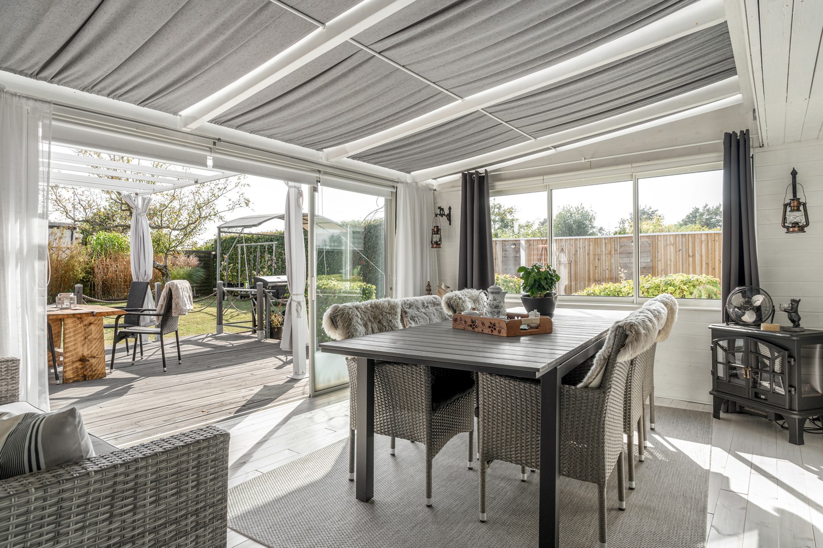 Enplanshus med gästhus och pool söder om vägen i Beddingestrand