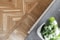 Det vackra fiskbensparkettgolvet i ek ger en tidlös och elegant känsla, medan den generösa inglasade balkongen i västerläge blir en förlängning av bostaden – perfekt som ett extra rum från tidig vår till sen höst. Här kan du njuta av eftermiddags- och kvällssolen i en lugn och harmonisk miljö.