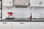 Köket är smakfullt inrett med vit kakel ovanför den stilrena, mörkgråa bänkskivan. Här finner ni stilrent vita luckor och flera funktionella skåp samt bra med arbetsyta. Den maskinella utrustningen inkluderar kyl och frys i fullhöjd, diskmaskin, spisfläkt, spishäll, inbyggd mikrovågsugn och ugn (2022). Här finns också gott om plats för matbord vid fönstret.