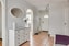 Välkomnande entré med klinker på golv och vit tapet på väggarna. Härifrån nås bostadens olika delar på ett naturligt sätt, finns även en altandörr ut till baksidan.