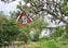 Lummig uppvuxen tomt med flera uteplatser, vackra vyer och rik växtlighet.