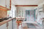 Rymligt och mysigt kök med vita köksluckor, vitlutat parkettgolv och målade väggar. Utrustat med spishäll (Bosch), ugn (AEG), kyl (Husqvarna), frys (Electrolux), fläkt samt diskmaskin (Whirlpool, 2021). Här finns praktiskt skafferi och plats för matbord för fyra personer vid fönster med trädgårdsutsikt.