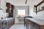 Direkt till vänster finner vi det exklusiva och trivsamma köket (IKEA 2024) med matplats för 2-3 personer. Köket är utrustat med induktionshäll, ugn, mikro, integrerad kyl/frys, diskmaskin, kolfilterfläkt samt vinkyl. Väggarna är målade vita och på golvet ligger praktiskt klinker i ljusgrå nyans.