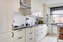 Direkt till vänster från hallen ligger det trivsamma och välplanerade köket, renoverat 2015. Köksinredningen kommer från IKEA med vita köksluckor och vitt kakel ovan den marmormönstrade laminatbänkskivan. Här finns gott om både förvaring och arbetsytor. Den maskinella utrustningen består av spishäll (IKEA), varmluftsugn (Whirlpool), mikro (IKEA) samt kombinerad kyl och frys från Electrolux med NoFrost/FrostFree. Köket är även förberett för diskmaskin, vilket ger möjlighet att enkelt anpassa efter behov.