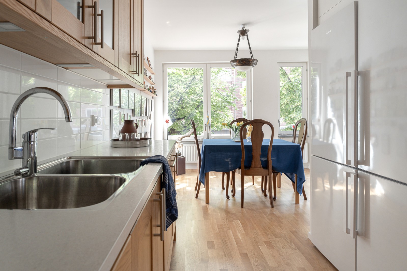 *I avgiften ingår värme och kallvatten. Det tillkommer ett obligatoriskt tillägg för kabel-TV och bredband om 254 kr/månaden. Det är individuell mätning och debitering för varmvatten och el. (Grundavgift 7105 kr, räknat ihop avgift plus tillägg för likviden.)