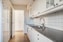 Köket är ljust och trivsamt med gott om förvaring och bra arbetsytor. Här finns plats för matbord vid fönstret. Köket är inrett med vita luckor, vitt kakel ovan laminatbänkskiva och utrustat med spishäll, ugn, spisfläkt samt kyl och frys i fullhöjd.