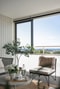 Köket är stilrent och funktionellt med plats för 4–5 personer, och vardagsrummet med vacker originalparkett är både ljust och mysigt, med direkt access till balkongen. Sovrummet är generöst tilltaget och bjuder även det på en fri vy över himmel och hav. Badrummet är helkaklat, modernt och utrustat med både golvvärme och dusch.