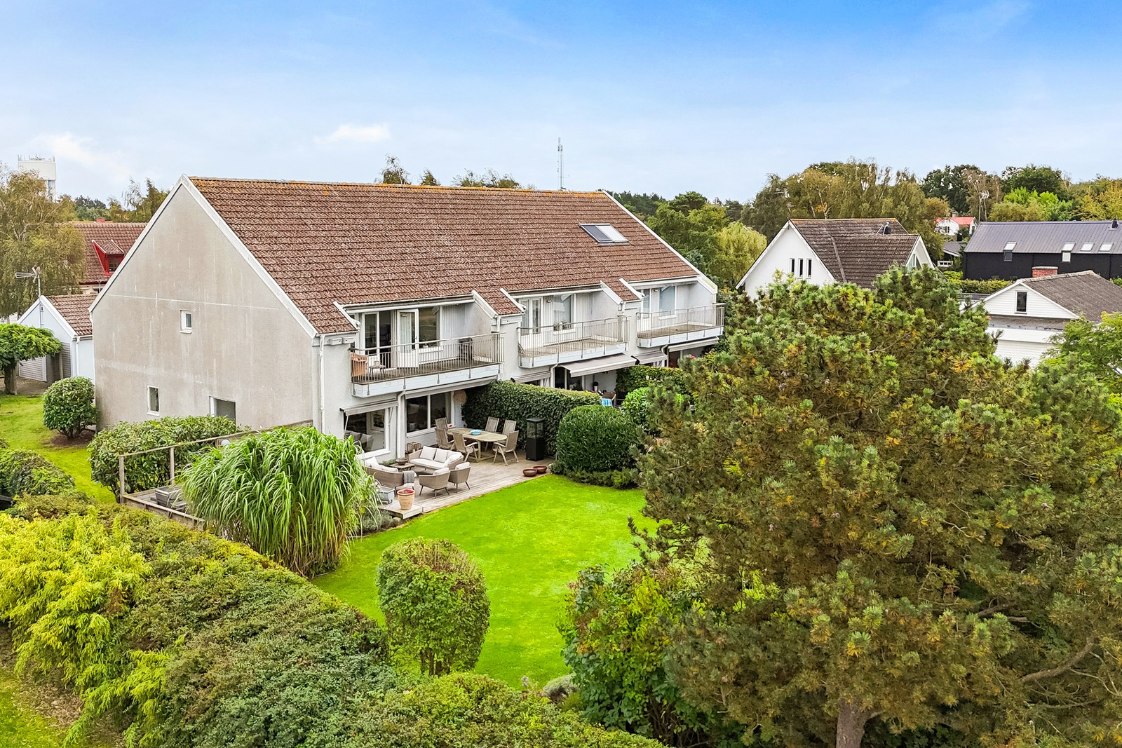 Det höga radhuset om 202 kvm över tre plan byggdes 1991 och har renoverats i omgångar. Formspråket är tidlöst rent med putsad fasad, brant tegeltak och stora glaspartier. Det fridfulla läget är svårslaget, med Flommens naturreservat som närmsta granne. Fågelvägen är det knappt en kilometer till havsbadet och du cyklar dit på några minuter. Radhuset är ett av endast tre i den välskötta och lågt belånade föreningen. Bostaden ligger i byggnadens ena gavel och har tillgång till den i särklass största trädgården. Radhuset känns som en privat villa både inomhus och ute i trädgården, tack vare den frodiga grönskan. Interiören präglas av blonda rumsvolymer, ekparketter i alla rum samt ett tidlöst skandinaviskt formspråk. Kökets, groventréns och den inre hallens klassiska Höganäsklinker kompletterar bilden. På entréplanet finns ljusa sällskapsytor i öppen planlösning med matplats. Glaspartier i två väderstreck skapar öppen transparens mot utemiljö och fri himmel. Härifrån kommer du ut på ett generöst trädäck som gränsar till stora och insynsskyddade gräsytorna kantade av varierad grönska. Här nere på entréplan finns även det rymliga Kvänumköket, ett nyrenoverat och sobert badrum samt en groventré med tvättstuga. På mellanplanet finns hall, två sovrum, stort badrum samt ett allrum med havsutsikt och terrassbalkong. Tredje planet har drag av klassisk penthouse med två rum och takfönster. Det lugna och privata läget i Falsterbo kräver troligen ingen djupare förklaring. Här lever du ett aktivt liv vid havet; nära hav, hamn, stränder, golfbanor och helt unik natur.