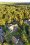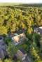 Skyddad från insyn på en tomt som gränsar till en allmänning ligger denna New England inspirerade trävilla från 2009 med renoverad vinkeldel från 1970-talet.