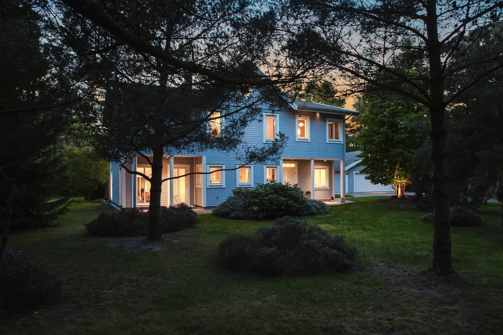 Innanför villans närmast heltäckande glaspartier sveper det varma, ombonande skeppsgolvet ut under en rejäl takhöjd. Ljuset faller in från alla fyra väderstreck och matsalens breda glasburspråk ligger i öppen planlösning med sällskapsytorna. Transparensen mot den stora trädgårdens höga grönska är snudd på total. Den stora villan byggdes 2005 i en tidlöst formspråk med tydliga drag av den klassiska New England-stilen. Den liggande brädfasaden under det svagt sluttande taket har högsmala fönsterpartier med vita karmar. Gestaltningen är något sluten mot entrésidan för att på trädgårdssidan öppna upp med glaspartier, träterrass och snickarglada terrassbalkonger. Runt villan och genom gräsytorna löper stensatta gångar fram till de fyra hörnens små terrasser under tak flankerade av klassiska, vita kolonner. Byggnaden ligger långt in på den stora tomten om närmare 3000 kvm och gränsar till en allmänning. Interiören präglas av rena arkitekturlinjer och till stor del öppen planlösning med ljus från flera håll. Villan har två signaturgolv som kommer igen i alla ytor. Dels ett skeppsgolv från Junckers, dels svagt strukturerad klinker i kulören italiensk sandsten. Utöver ett stort och exklusivt utrustat Marbodalkök, samt sällskapsytor och matsal i ett lägre etage, rymmer entréplanet badrum, grovkök samt ett ljust och charmigt arbetsrum med stark atmosfär och platsbyggd garderobsvägg. Övre planet överraskar med ett mycket stort och ljust allrum med skyhögt sadeltak och utgång till en av två terrassbalkonger. Häruppe finns även tre sovrum, badrum, tvättstuga samt en magnifik master bedroom-svit med walk-in-closet och sobert badrum. Det skyddade läget i fridfullt grönskande kvarter i Ljungskogen kräver troligen ingen djupare förklaring. Närheten till unik natur, långa stränder och möjligheten till ett aktivt liv vid havet är lika given som välkänd.
