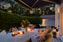 De dubbla glasdörrarna kan stå på vid gavel ut mot sommarkvällens blomdoft och fågelsång. Härute ligger ett trädäck om 100 kvm dit aftonsolens strålar behagligt når och som får rumslighet och skydd av en hög bokhäck tillsammans med de långa ribbträplanken. Sydvästläget låter solen falla in över både däck och de kortklippta grönytorna i den stora och parkliknande trädgården. Den skyddade platsen känns privat, nästan som nedsänkt i en stor skogsglänta där ljuset silar ner.