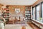 Vardagsrum: Parkettgolv, tapetserade väggar. Rum i fil. Altandörr till trädgården.