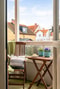 Vardagsrummet är generöst och lätt att möblera, med plats för både soffgrupp och matplats för middagar med familj och vänner. Härifrån nås balkongen – en härlig förlängning av rummet där eftermiddagssolen dröjer sig kvar. Utsikten över den gemensamma gårdsmiljön och de omgivande husen ger en rofylld inramning.