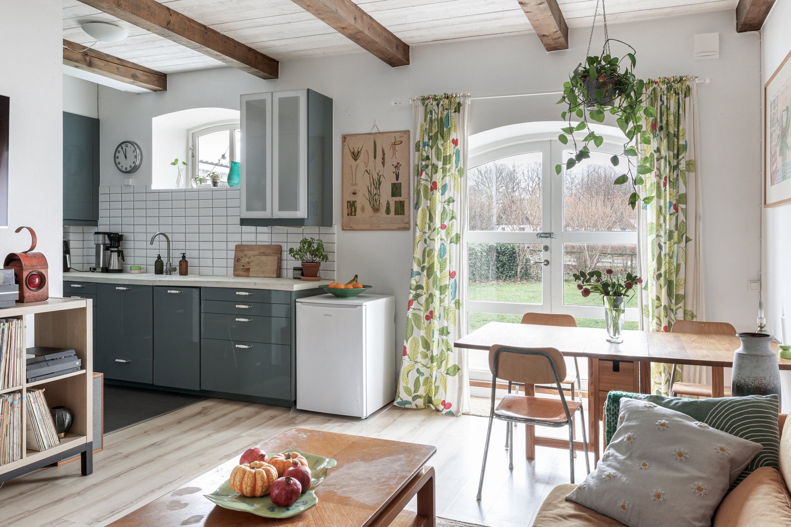 Boendet är lättskött med välplanerade ytor, huskänsla och moderna bekvämligheter som golvvärme på hela entréplanet, egen tvättmaskin och diskmaskin samt badrum på både över- och undervåningen. Den äldre byggnadens karaktär, med djupa fönsternischer och synliga bjälkar, smälter samman med modern funktionalitet. Entréplan rymmer ett kök och vardagsrum i öppen planlösning, och från vardagsrummet når du en trädgårdstäppa med trädäck, perfekt för sociala stunder.
