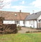 I vinkeln på huset finns entrén. Innanför ytterdörren väntar en hall med vackert tegelgolv, tegelvägg, synliga bjälkar och öppet upp i nock. Tilltalande badrum med klinkergolv, kakel på väggar, synlig bjälke och duschhörna. Gavelrum med brädgolv, synliga bjälkar i tak, öppet upp i nock, vacker kamin och altandörr ut till trädgården.