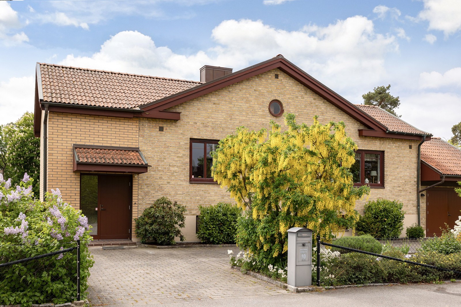 Villan ger ett mycket tilltalande första intryck med sin gedigna fasad, vackra proportioner och den stora tomten som ramas in av uppvuxna träd och välskött grönska. Uppfarten leder fram till garage och erbjuder gott om plats. Tomten är generös och varierad, med skyddade delar som passar lika bra för lek och odling som för umgänge och middagar utomhus. Här finns både en härlig altan i väster med kvällssol samt en trivsam uteplats i söder.