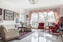 Entréplanet präglas av en generös takhöjd om 2,7 meter och stora fönsterpartier som låter ljuset strömma in. Här breder de imponerande sällskapsytorna ut sig i en harmonisk helhet där vardagsrum, allrum och matrum samspelar, men vid behov kan avgränsas med eleganta skjutdörrar. Rummen binds samman av ett exklusivt marmorgolv i fiskbensmönster, medan stuckaturer och diskret infällda spotlights i taken förstärker den sofistikerade atmosfären. I tv-rummet bidrar kaminen till både värme och stämning under årets svalare månader.