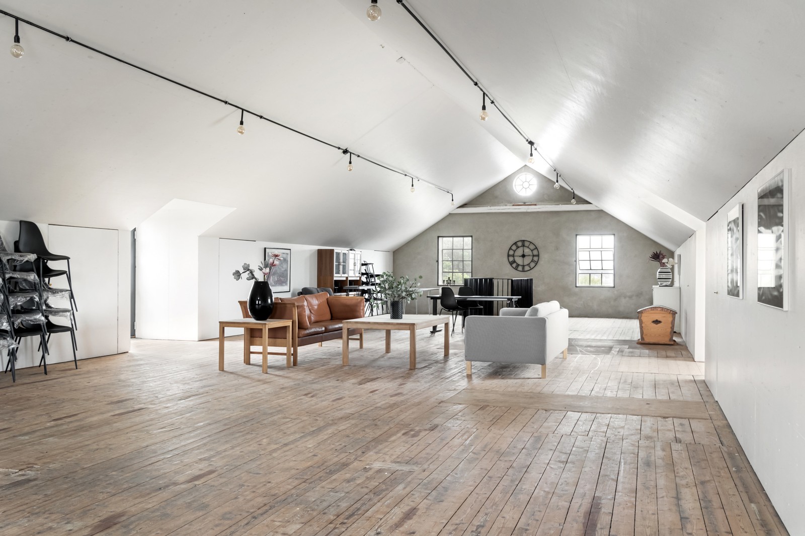 I den andra delen av entréplanet öppnar den sociala och helt unika våningen upp sig. Stort allrum uppdelat i olika avdelningar. De charmiga järnbalkarna hjälper till att dela upp rummet i olika avdelningar. Borterst mot gaveln finns det stora, sociala köket och matplatsen. Även här flödar ljuset in från de stora fönsterpartierna, utgång till trädäck med utsikt över vidderna.