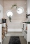 I allrummet finns även kamin, trappa upp till ovanvåningen och utgång i väster och öster. Badrum med klinkergolv, kakel på väggar, dusch.