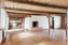 Här möts du av ett hem med själ och karaktär, där de synliga bjälkarna – märkta med romerska siffror – bär på berättelser från en annan tid. Takhöjden upp till bjälkarna är strax över 180 cm, vilket skapar en ombonad och genuin känsla samtidigt som rummen upplevs luftiga och harmoniska. Spegeldörrar och det rustika tegelgolvet i entrén förstärker husets tidlösa uttryck.