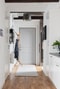 Välkomnande hall med gott om plats för avhängning samt förvaring. Inbyggd belysning.